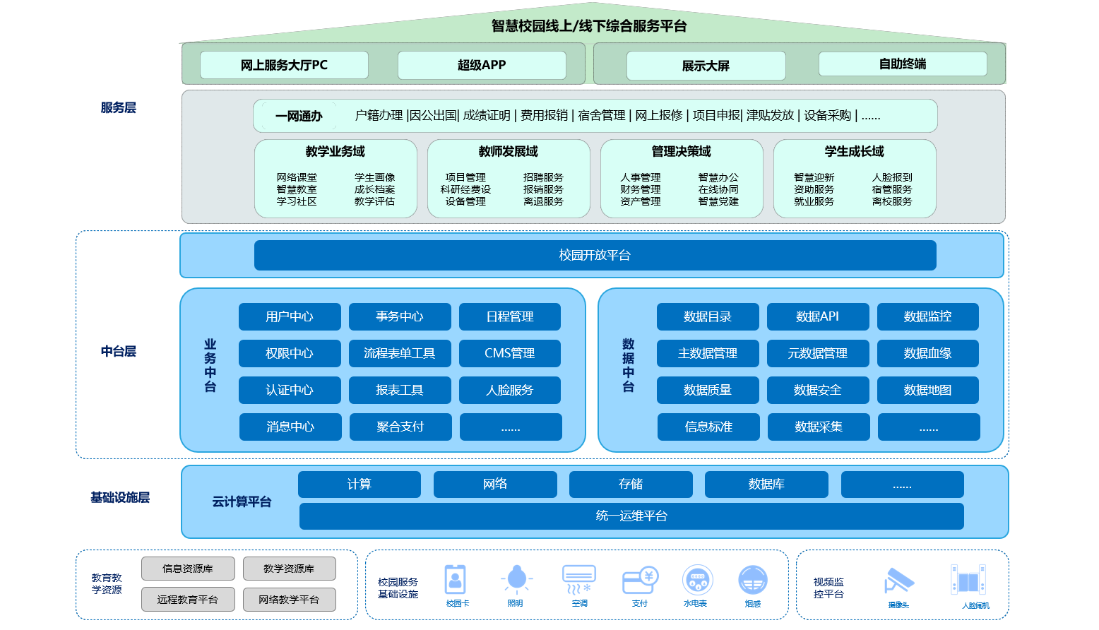網上(shàng)服務大(dà)廳是智慧校園整體框架中最主要的用(yòng)戶服務窗口,将校内各類資訊、服務、系統入口、消息待辦、高(gāo)頻應用(yòng)等與師生日常科研教學密不可分的信息資源統一聚合,并按照師生身份和(hé)功能(néng)業務域做合理(lǐ)劃分,讓師生用(yòng)戶能(néng)夠以良好(hǎo)的用(yòng)戶體驗獲得對(duì)校内各類信息資源的一站(zhàn)式訪問。