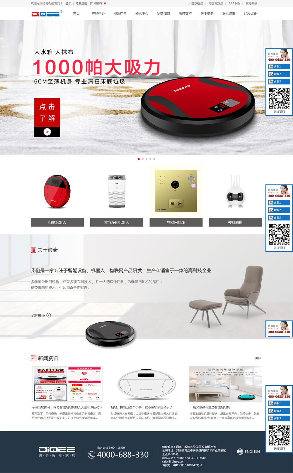網站(zhàn):http://www.diqee.com/ 締奇股份是一家專注于智能(néng)設備、機器人、物聯網産品研發、生産和(hé)銷售于一體的高(gāo)科技企業,我們擁有30多名業界資深的研發工(gōng)程師,并配備了(le)各類領先的研發與檢測設備,截至2016年6月,我們已經獲得了(le)100多項專利技術,爲業界翹楚。w