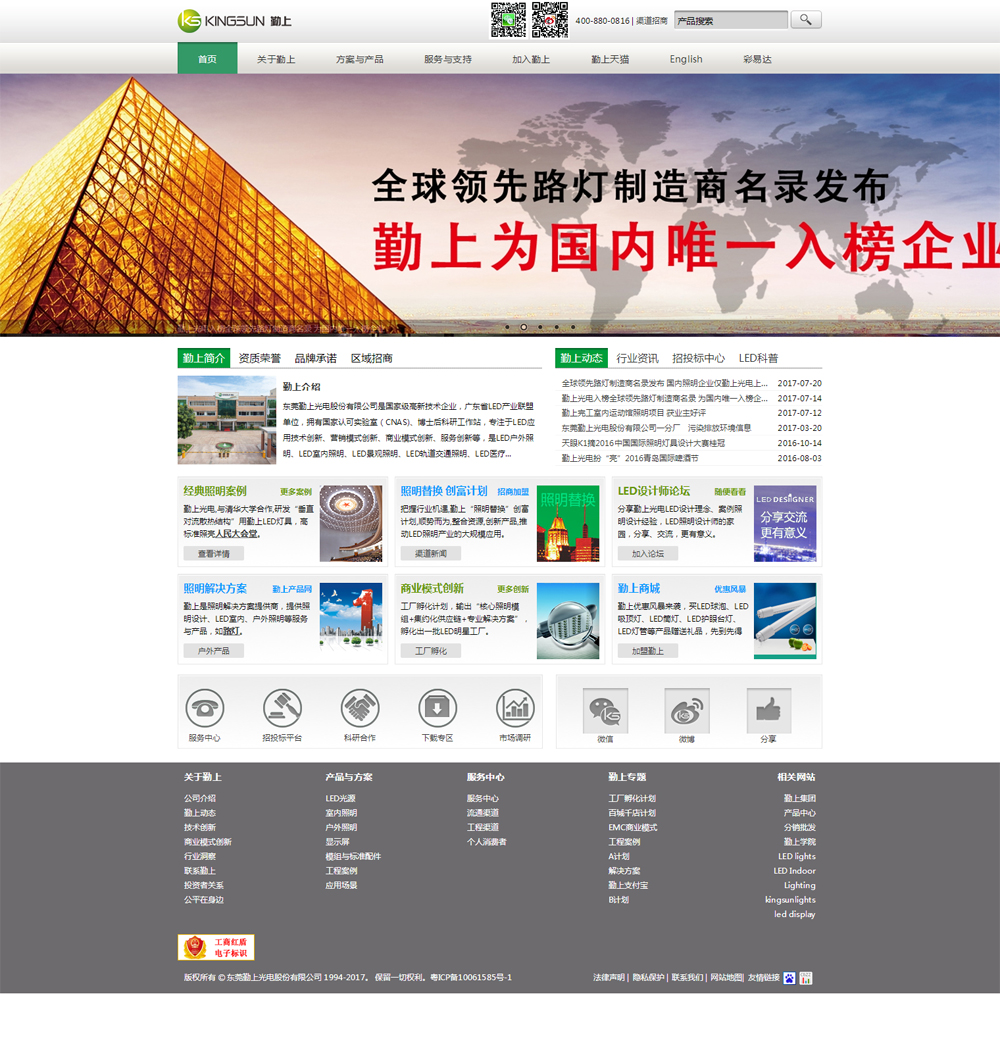 網址:http://www.kingsun-china.com/東莞勤上(shàng)光電股份有限公司是國家級高(gāo)新技術企業,廣東省LED産業聯盟單位,擁有國家認可實驗室(CNAS)、博士後科研工(gōng)作(zuò)站(zhàn),專注于LED應用(yòng)技術創新、營銷模式創新、商業模式創新、服務創新等,是LED戶外(wài)照明(míng)、LED室内照明(míng)、LED景觀照明(míng)