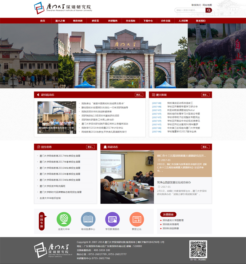 網站(zhàn):http://www.xmusz.cn/廈門(mén)大(dà)學由著名愛國華僑領袖陳嘉庚先生于1921年創辦,是中國近代教育史上(shàng)第一所華僑創辦的大(dà)學,也(yě)是國家“211工(gōng)程”和(hé)“985工(gōng)程”重點建設的高(gāo)水(shuǐ)平大(dà)學。建校以來(lái),學校秉承“自(zì)強不息,止于至善”的校訓,積累了(le)豐富的辦學經驗,形成了(le)鮮明(míng)的辦學特色,成爲一所