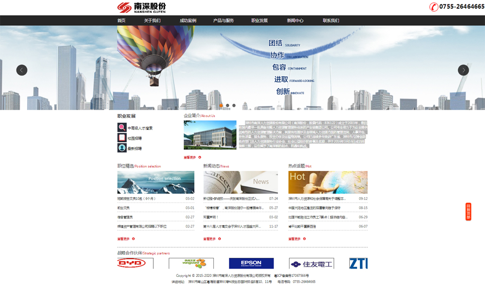 網站(zhàn):http://www.nsjob.net/深圳市南深人力資源股份有限公司(南深股份,股票代碼:836122)成立于2003年,是目前國内最早一批具備完整人力資源管理(lǐ)服務體系的産業鏈集團公司。公司專業緻力于爲企業提供戰略性的人力資源管理(lǐ)解決方案,其服務範圍涉及各領域人力資源方面的管理(lǐ)咨詢、人事(shì)外(wài)