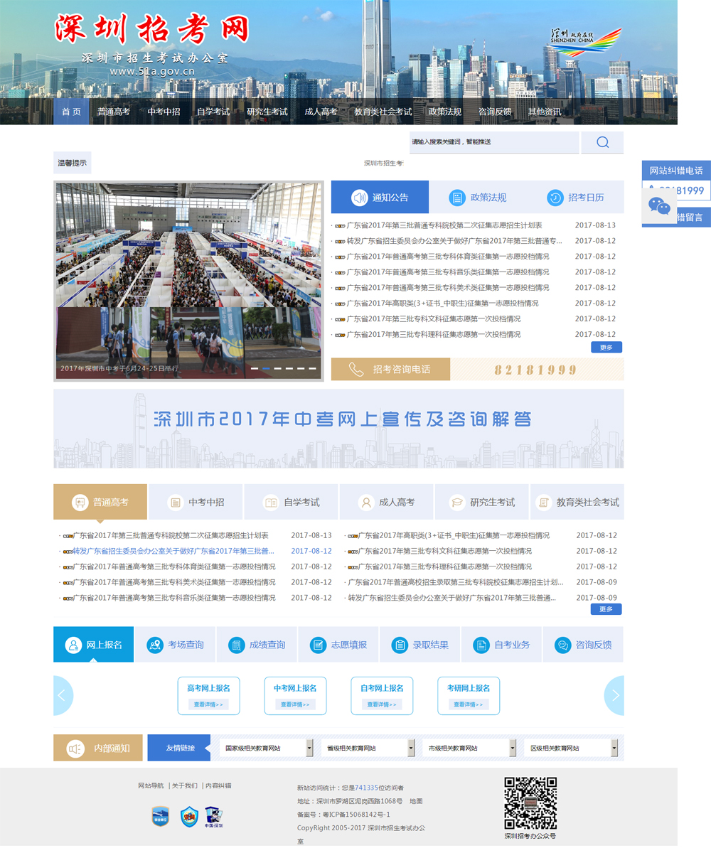 網站(zhàn):http://www.51a.gov.cn/深圳市招生考試辦公室是深圳市招生考試委員會(huì)、深圳市自(zì)學考試委員會(huì)的日常辦事(shì)機構,是深圳市教育局參照公務員法管理(lǐ)的直屬單位,主要負責全國普通高(gāo)校招生統一考試、全國碩士研究生招生考試、高(gāo)等教育自(zì)學考試、全國成人高(gāo)校招生考試、廣東省普通高(gāo)中學業水(shuǐ)平考試、深
